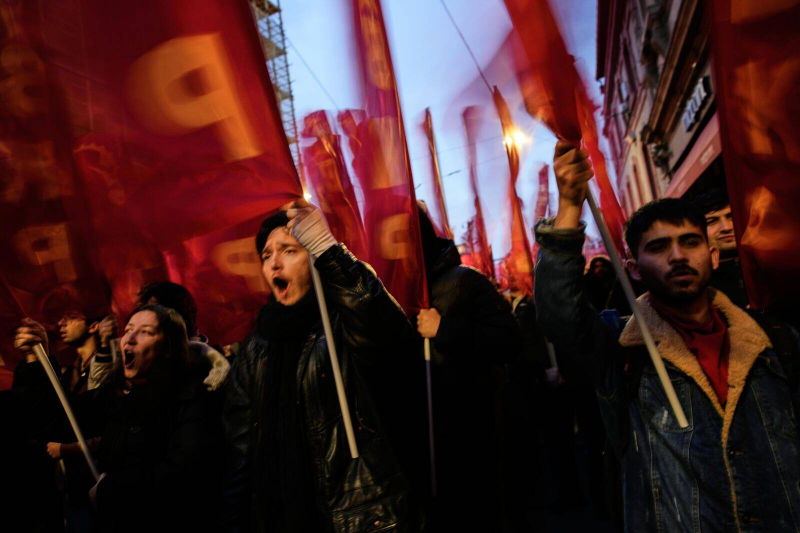 Des manifestants scandent des slogans contre la capture de Nicolas Maduro à Istanbul en Turquie.